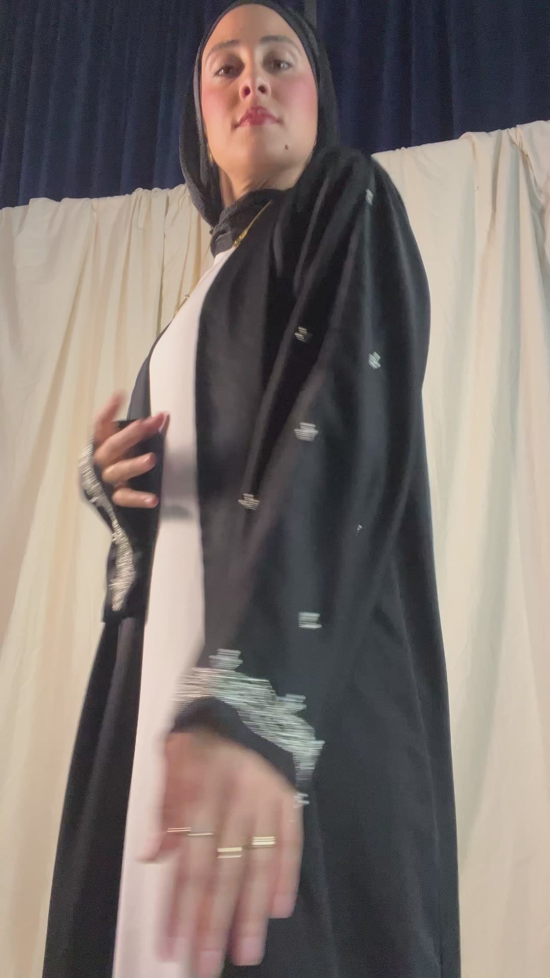 A black open abaya with a fluid, relaxed drape, featuring delicate beaded detailing along the sleeves for a subtle touch of elegance.